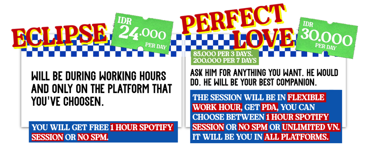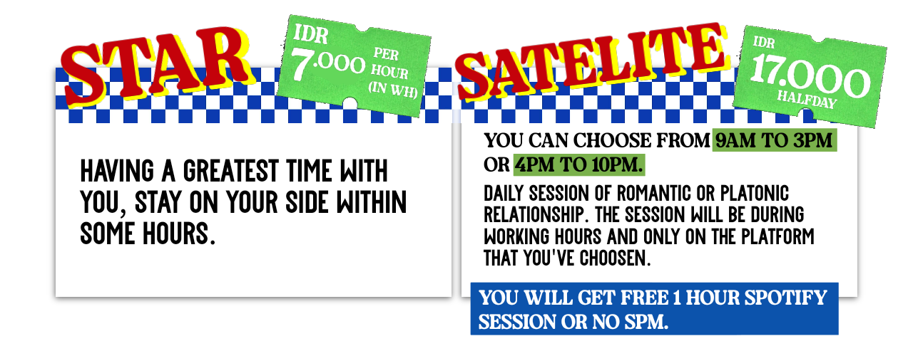 | Movie Date | IDR 7.000/Movie or IDR 15.000/3 Episode. IDR 10.000/30 minutes on mic. |